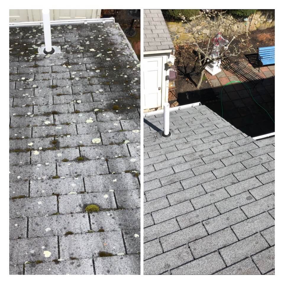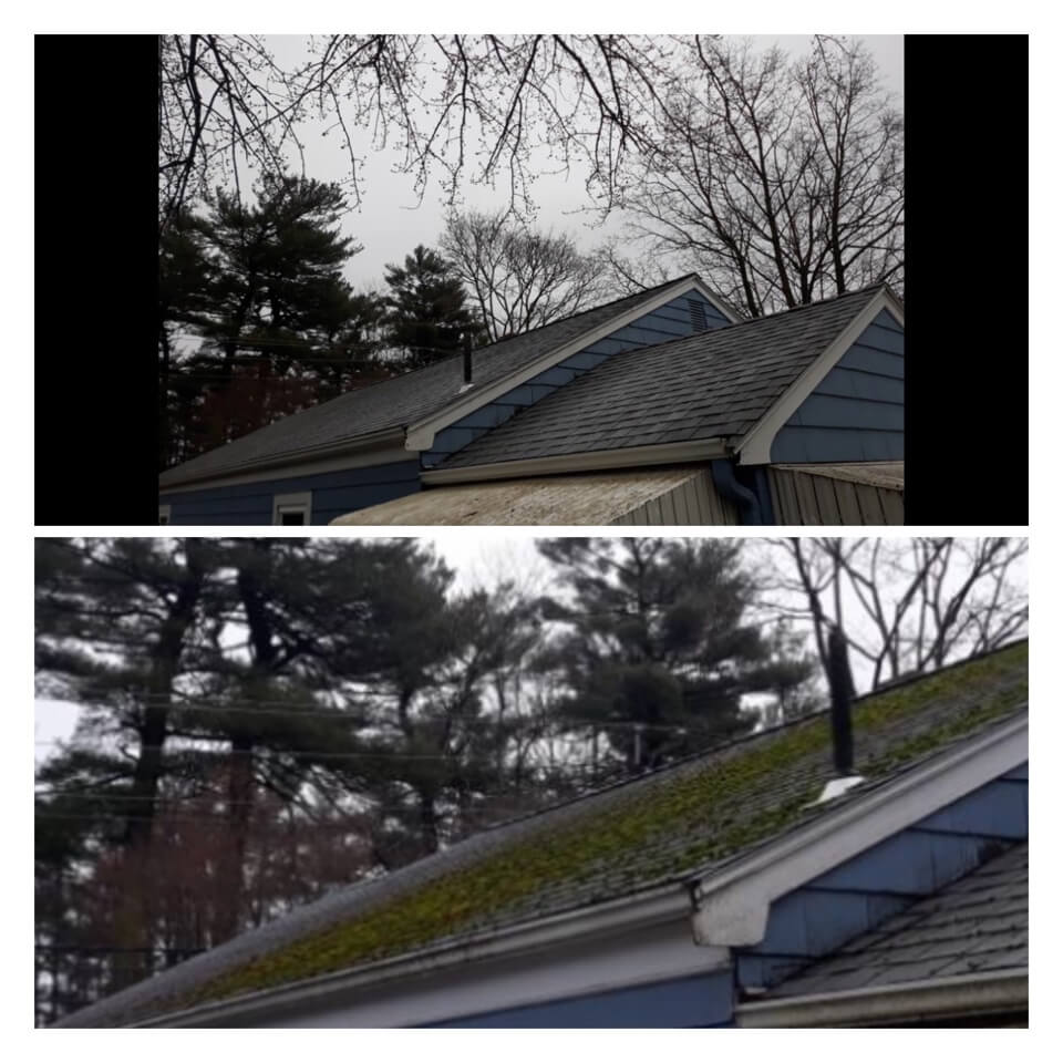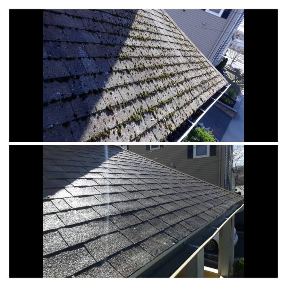 HiCleaners is the most experienced company in Cambridge, MA that deals with roof washing and roof soft washing. All of our employees are trained to recognize precise solution mixing ratios to provide you with the safest and most effective soft washing service. Roofs are a commonly neglected part of a house due to the fact that most people don’t have ladders to access it, so it is very easy to just leave it alone and forget about problems that may start to arise. Just like many home owners, discoloration and small bits of moss on a roof can be overlooked because of the misconception that it is just aesthetic. However, it isn’t just aesthetic, the moss slowly lifts the granules off the shingles which in turn shorten the life of the shingle. The moss also spreads, just like any bacteria if it is left alone for too long, it can quickly become a problem that spirals out of control. Call HiCleaners for a free quote, we only use the most advanced eco-friendly solutions and equipment to make sure the job is done right, for the safety of the employees, your plants, grass, pets, and children.