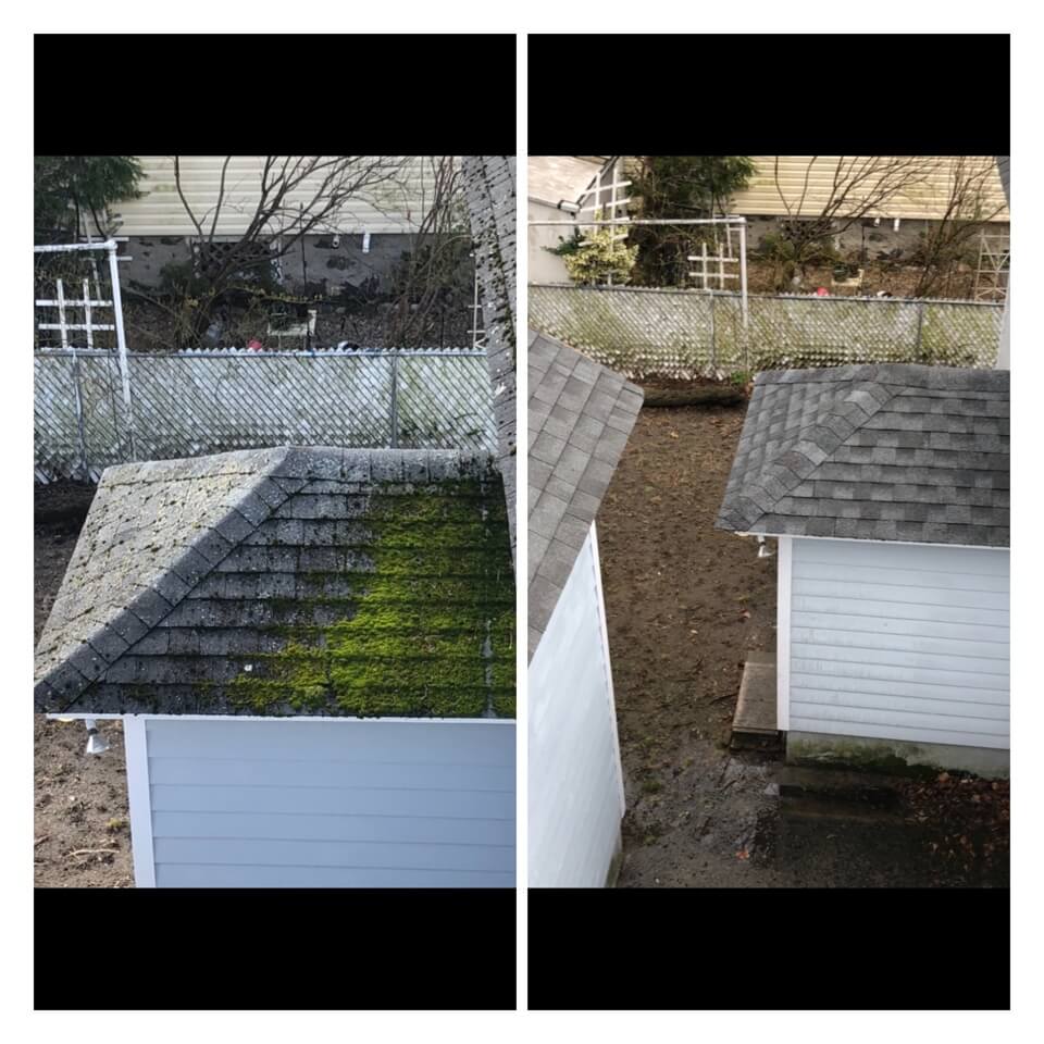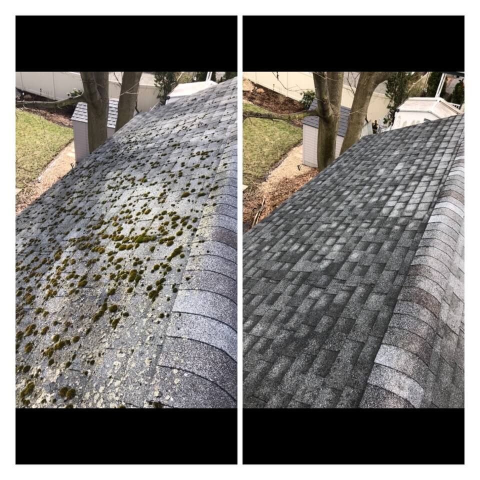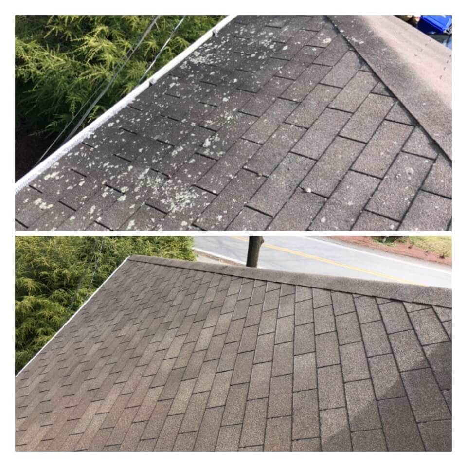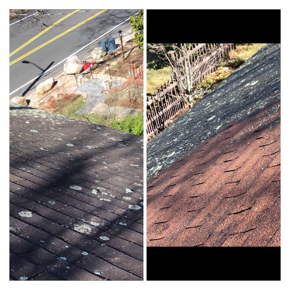 HiCleaners is the most experienced company in Cambridge, MA that deals with roof washing and roof soft washing. All of our employees are trained to recognize precise solution mixing ratios to provide you with the safest and most effective soft washing service. Roofs are a commonly neglected part of a house due to the fact that most people don’t have ladders to access it, so it is very easy to just leave it alone and forget about problems that may start to arise. Just like many home owners, discoloration and small bits of moss on a roof can be overlooked because of the misconception that it is just aesthetic. However, it isn’t just aesthetic, the moss slowly lifts the granules off the shingles which in turn shorten the life of the shingle. The moss also spreads, just like any bacteria if it is left alone for too long, it can quickly become a problem that spirals out of control. Call HiCleaners for a free quote, we only use the most advanced eco-friendly solutions and equipment to make sure the job is done right, for the safety of the employees, your plants, grass, pets, and children.