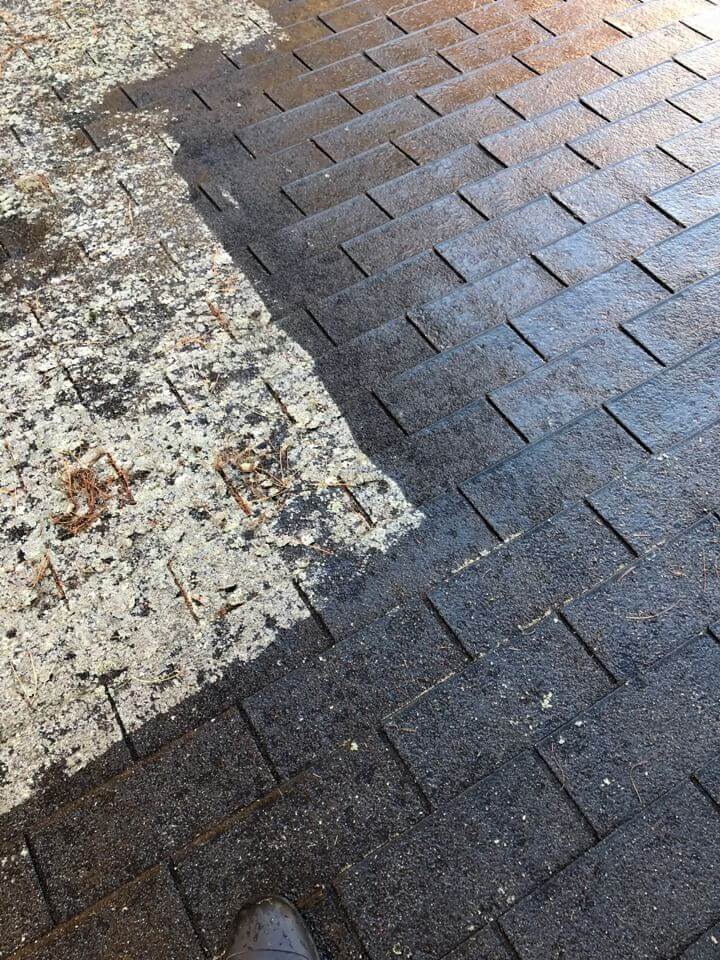 Dark spots caused by algae will disappear as rain slowly takes it away after our treating process